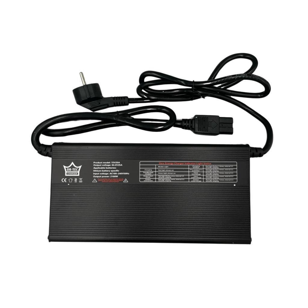 Elektrikli motosiklet, bisiklet ve mobilite araçlarınızın lityum akülerini kısa sürede ve güvenli şekilde şarj edin! Ortec 72V 25A Akıllı Lityum Akü Şarj Cihazı, hem Li-Ion hem de LiFePO4 akülerle uyumlu yapısı ve akıllı şarj yönetim sistemiyle profesyonel kullanım için özel olarak tasarlandı.